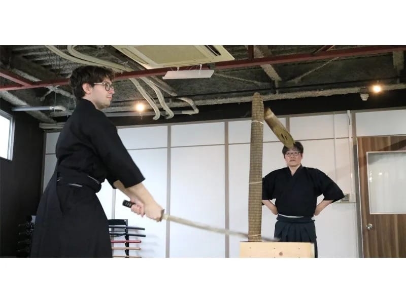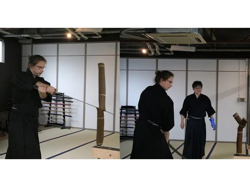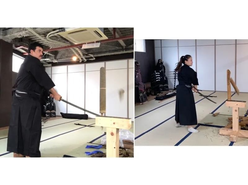 After changing into a kimono and learning basic sword techniques, you will be given a trial slash using a real Japanese sword in the same way as you have learned.