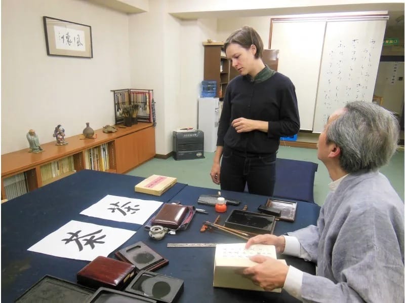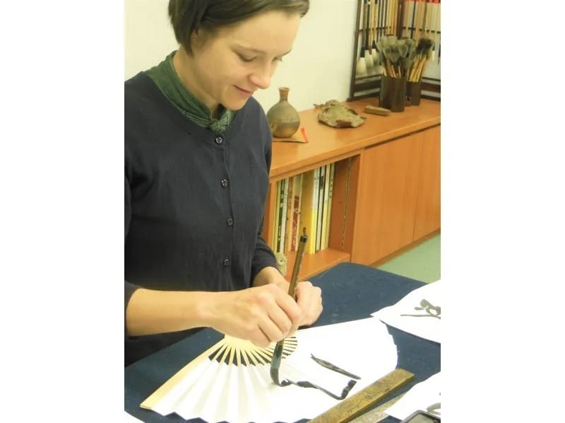 Calligraphy experience with a souvenir of a brush and a fan (English translation available)