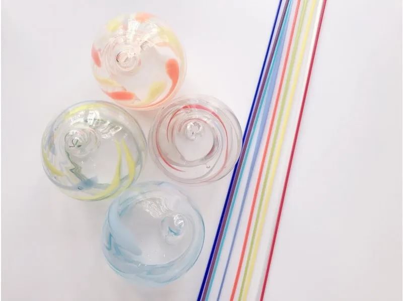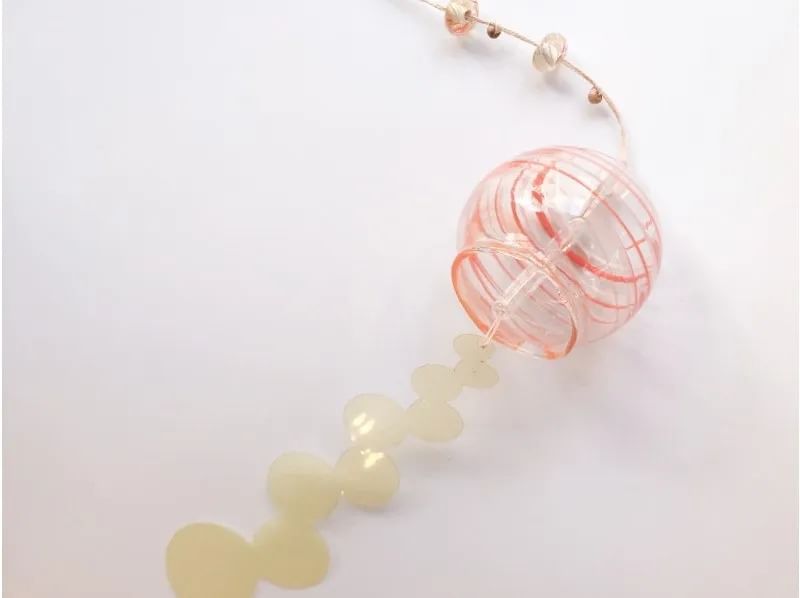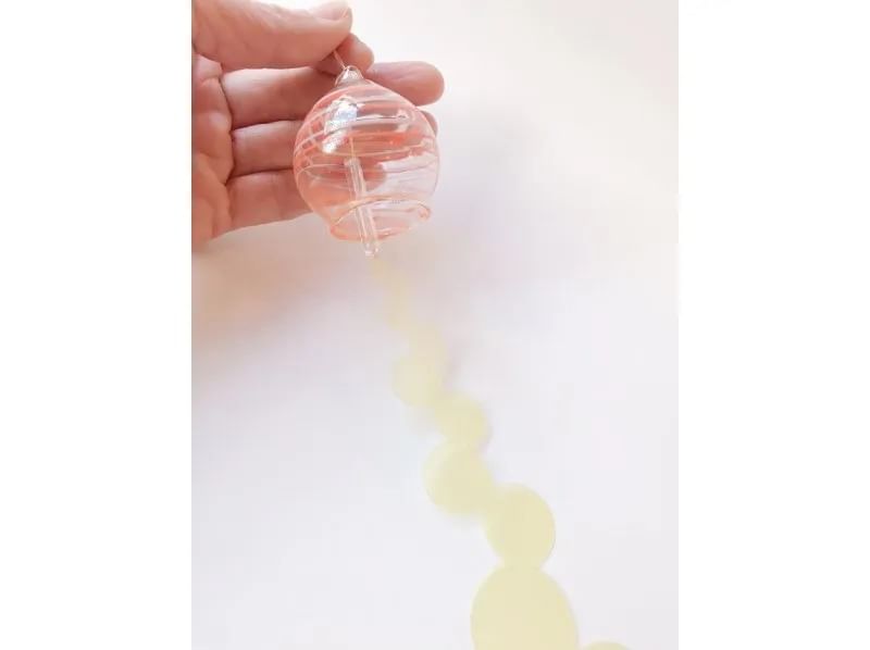 Choose two colors of your choice and blow melted glass with a burner. It's a full-fledged experience where you can make two dragonfly balls with a lace pattern as decorations. Once the glass has cooled, combine the colorful strips, connect them with linen thread, and voila! Stay cool during the hot summer with handmade wind chimes♪