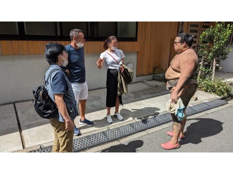 Unlike a practice tour where you just watch the practice and then finish, you will be accompanied by a guide who specializes in sumo and will guide you through to the end.