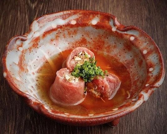 The mushrooms are prepared raw, grilled, stewed, and even mixed into pilaf. The tableware is as essential to the dining experience as the freshness of the ingredients and the preparation technique, he says. The beauty of the ko-imari porcelain from his collection and the immaculate plating will please all five senses.