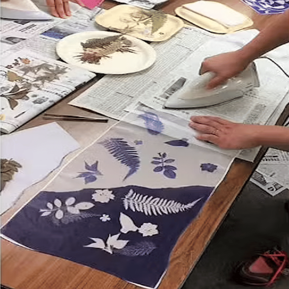 An easy dyeing experience that can be dyed with just an iron. Dye your stole or scarf colorfully. If you place flowers, leaves, bird feathers, etc. on the iron, the colors and designs will be transferred! Please create a dish filled with the blessings of nature, full of blooming flowers.