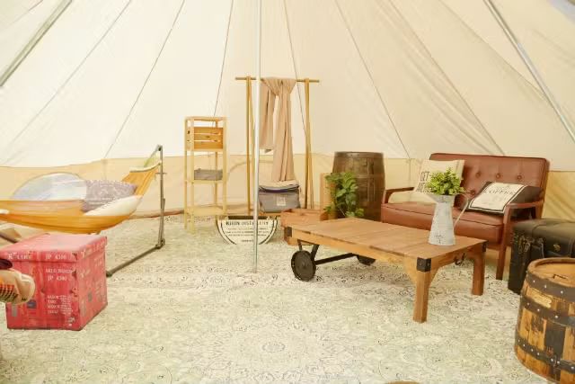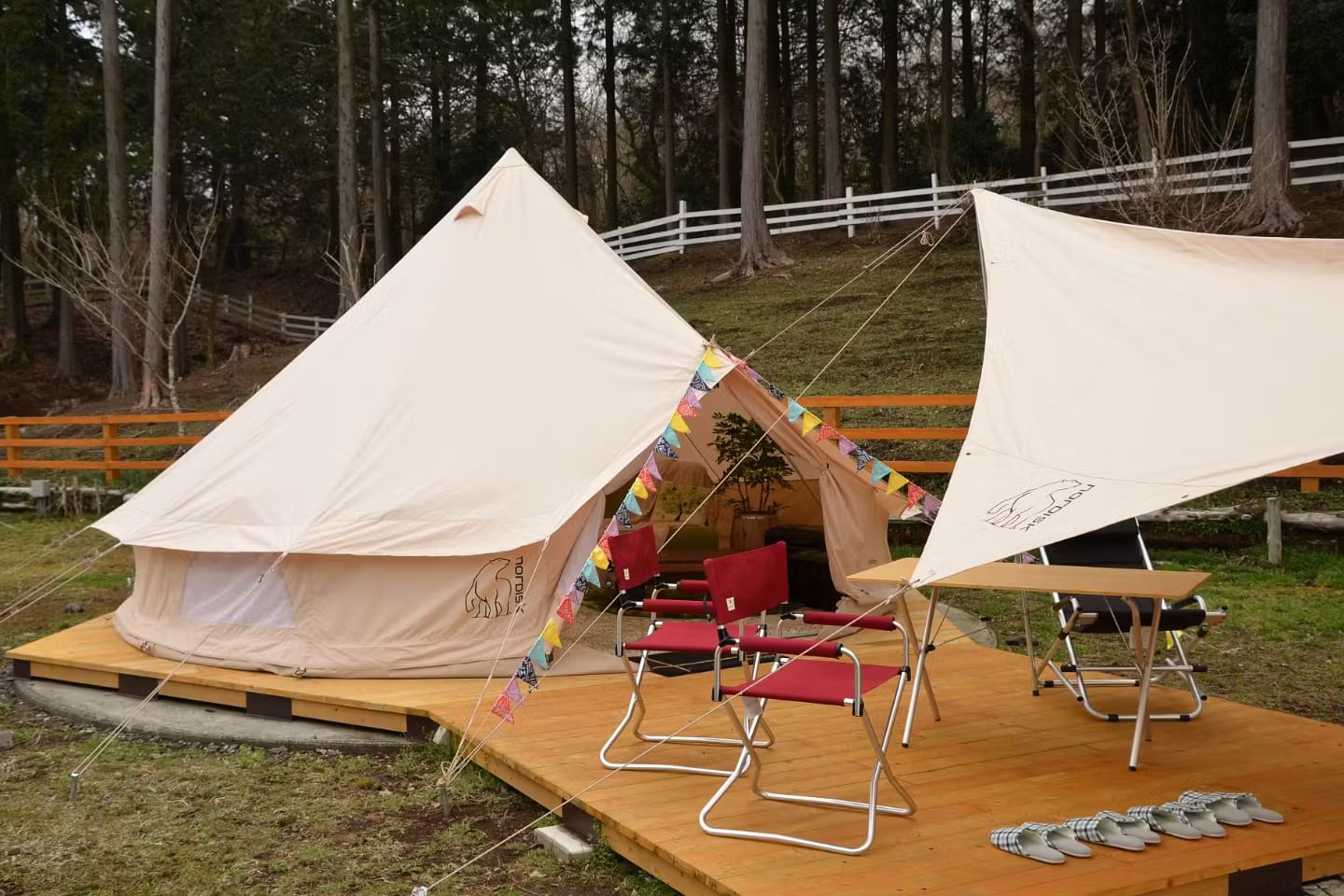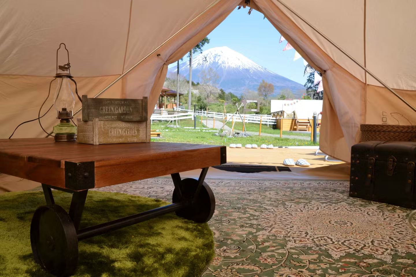 Lots of openness! Spend your time at a ranch with a view of Mt. Fuji. Enjoy camping empty-handed! Experience glamping at "Makaino Ranch Forest Hidden House." The spacious tent is equipped with sofas and hammocks. You can relax and feel like you're at home. Please spend a relaxing time at the ranch where you can see Mt. Fuji.