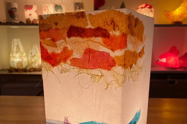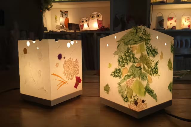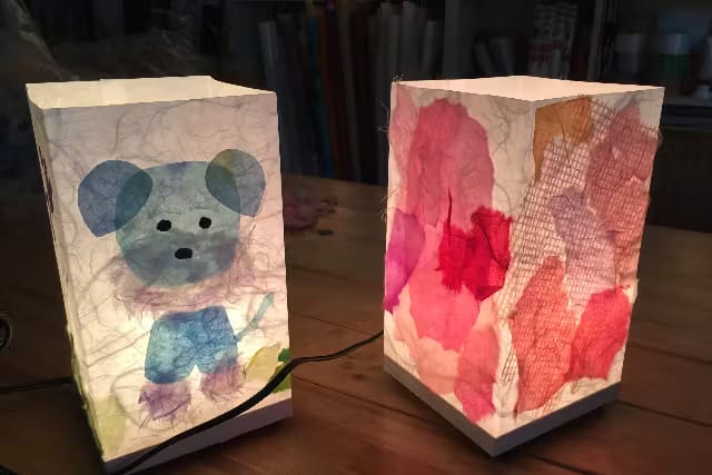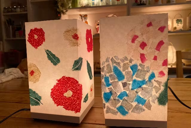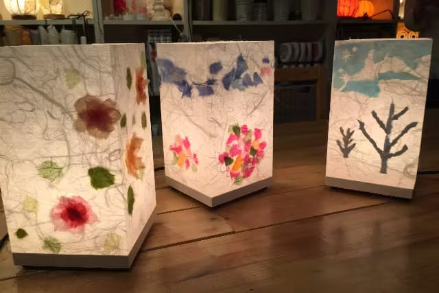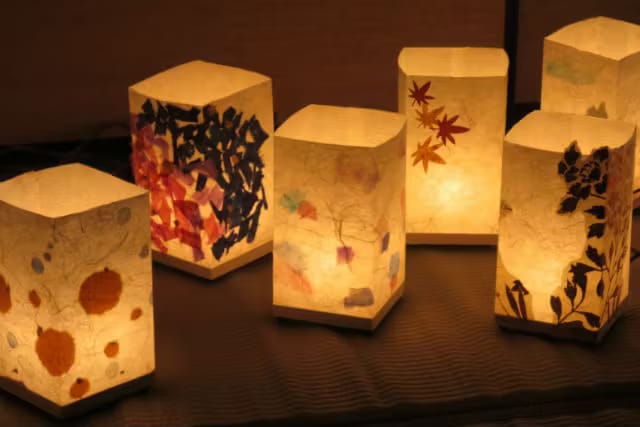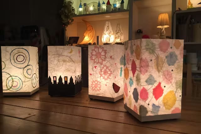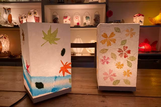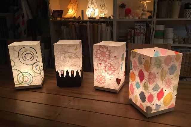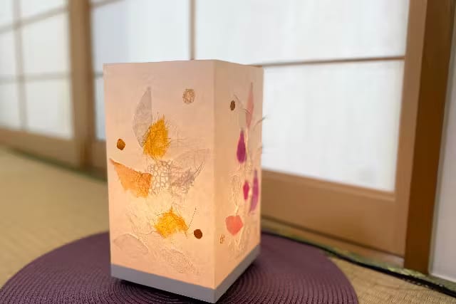 Let's make andon using Japanese paper. All you have to do is tear off the washi paper and paste the cutouts! The shine of the andon is slightly gentle. This item is full of Edo atmosphere and is perfect for displaying in a Japanese-style room! Lessons are for up to 2 people, so you can enjoy them with friends or couples.