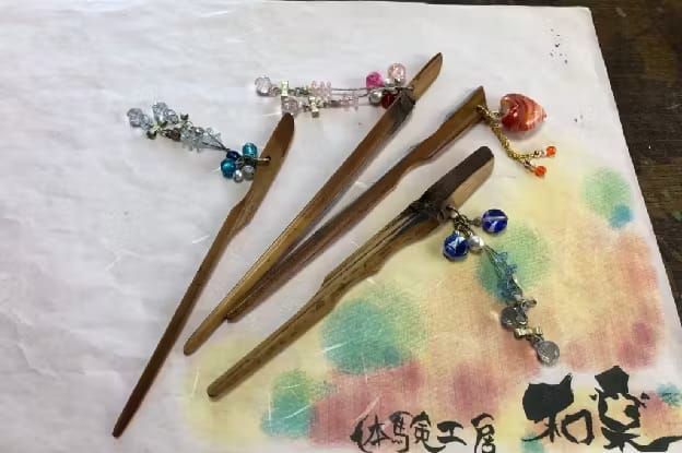 Experience Kyoto technology in a townhouse! Let's make Kyoto hairpins! We are making "Kyoto hairpins" using 200-year-old soot bamboo. The characteristic of soot bamboo hairpins is that they do not fall off even with vigorous movements, so they are used on Kabuki stages and period dramas. These are authentic hairpins that can only be made in our workshop. You will be asked to design and produce the hairpin yourself. You can also enjoy your time choosing your favorite dragonfly decoration. Just looking at the original designed decorations will surely make you excited. Please rest assured that Stas will respond carefully. Men sometimes make them as gifts for loved ones. How about the one and only original kanzashi in the world, not only for everyday use, but also for walking around Kyoto, coming-of-age ceremonies, and graduation ceremonies? The interior of the store has a nostalgic atmosphere. Please take a look at the indoor museum.The experience location is a Kyoto townhouse with a nostalgic atmosphere. What's appealing about it is that you can relax and create in a calm atmosphere. There are museum-quality exhibits inside the room, making it popular with foreigners and families. Our store is a 10-minute walk from JR Kyoto Station. Please come and visit us once while sightseeing in Kyoto.