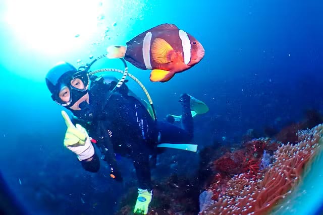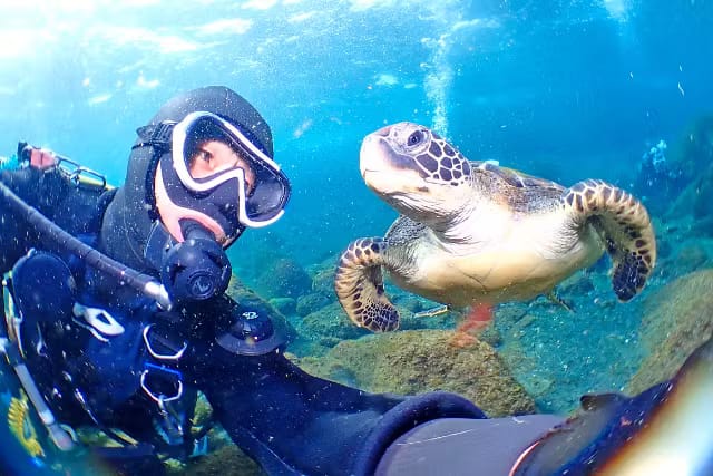 This is an Izu Oshima experience diving plan for beginners.Your first time in the ocean will be at Izu Oshima! Would you like to explore the world of the sea with a veteran guide? Beautiful scenery awaits you. The necessary equipment is available here. We will guide you to those who are over 150cm tall. We have a small group system, so even beginners can feel at ease. A lot of different creatures live in the sea of Izu Oshima! In addition to fish, many other creatures live in the sea. Izu Oshima in particular is home to a wide variety of creatures. It's full of wonders that can't be found on land. The guide will introduce the names of the creatures encountered during the experience. Let's have fun and learn about the sea world.