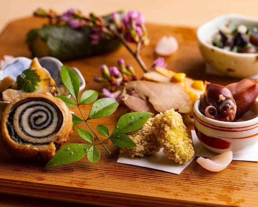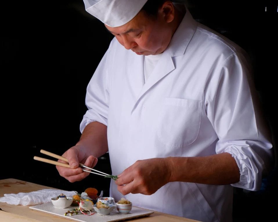During his training at the 3-Michelin-starred Hyotei in Kyoto, Hiroshima-born chef Yoshio Nakashita met his future wife, Tomomi. Returning to her native Tokyo with her, Chef Nakashita continued training at various restaurants, before taking over Ginza Shibahama in 2022.