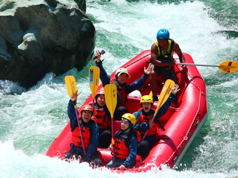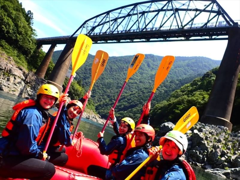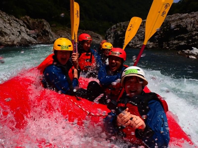 Join us for a half-day rafting adventure on the Yoshino River. Our rubber rafts can hold up to 8 people. Raft down the Yoshino River, home to Japan’s most furious rapids (Class 4 rapids) amid deep canyons and aquamarine waters. Conquer the fast and exciting whitewater together with your crew!