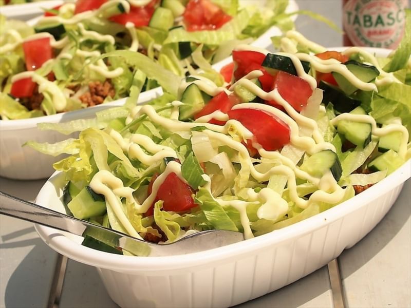 After rafting, we serve a delicious hot meal – homemade taco rice. Riverside lunch is second to none!