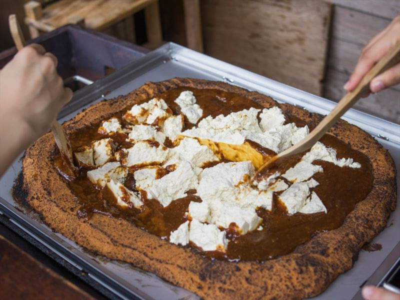 "Hirarayaki" is Iya's local cuisine, a BBQ of miso! Iya's famous "Iwa Tofu" is the perfect match for the rich miso. Come with a group to enjoy unique Iya-style BBQ!