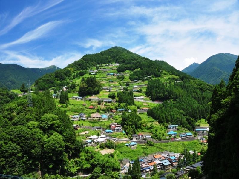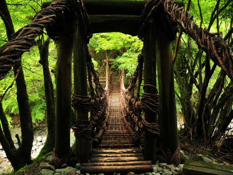 On a private car, visit Double Vine Bridges of Oku-Iya, observatory with a view of Ochiai village – designated site as Preservation Districts for Groups of Historic Buildings, and Iya Valley awarded with two stars on Michelin Green Guide Japan.