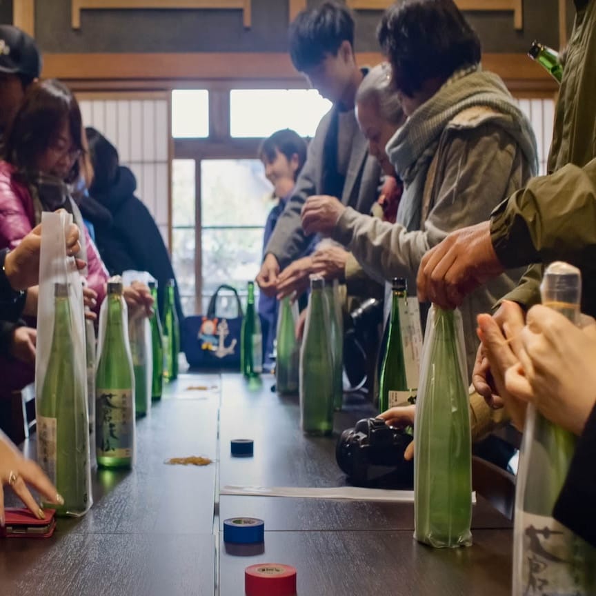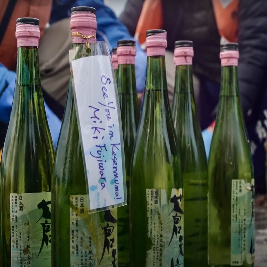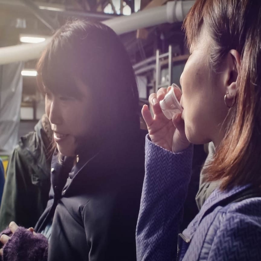 Sample sake from Otokoyama brewery and a special brew that has been fermenting under the waves of Kesennuma oyster farms for months.