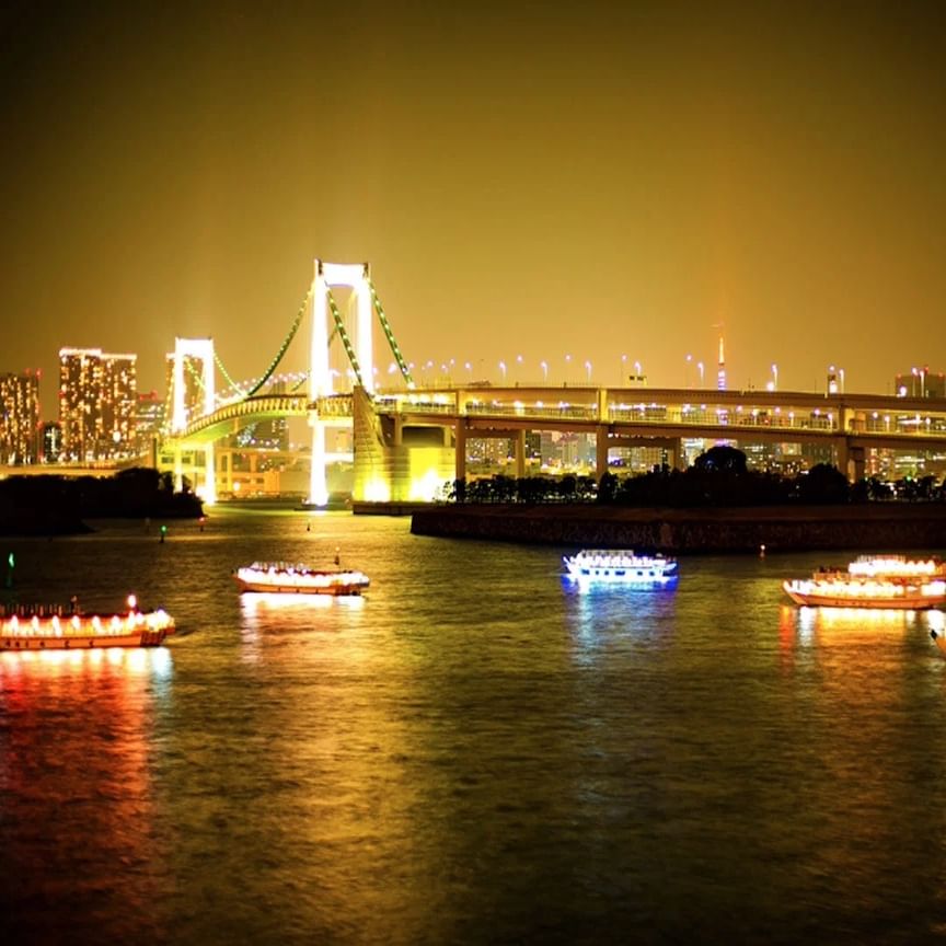 Indulge in a specialty tempura dinner on a private sightseeing yakatabune boat. Contemplate the magical, glowing scenery of Tokyo Bay as the city changes from day to night!