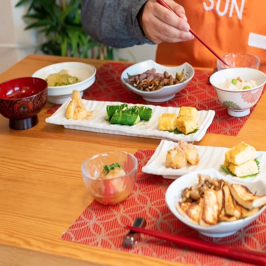 The menu for this class changes each month with the seasonal produce, making it the perfect class to try multiple times on each visit to Tokyo. You’ll get to experience what’s popular with the locals depending on the month and season. The menu offers a great variety and if you have any dietary requirements you can let us know so that it can be accommodated in your class. This family-friendly Japanese cooking experience aims to be inclusive of everyone, so please do not hesitate to mention any requirements! Enjoy Wagyu and 7 Japanese dishes Cooking Class. Once you have learned how to make these dishes, you will get to sit down and enjoy the multi-course meal yourself.