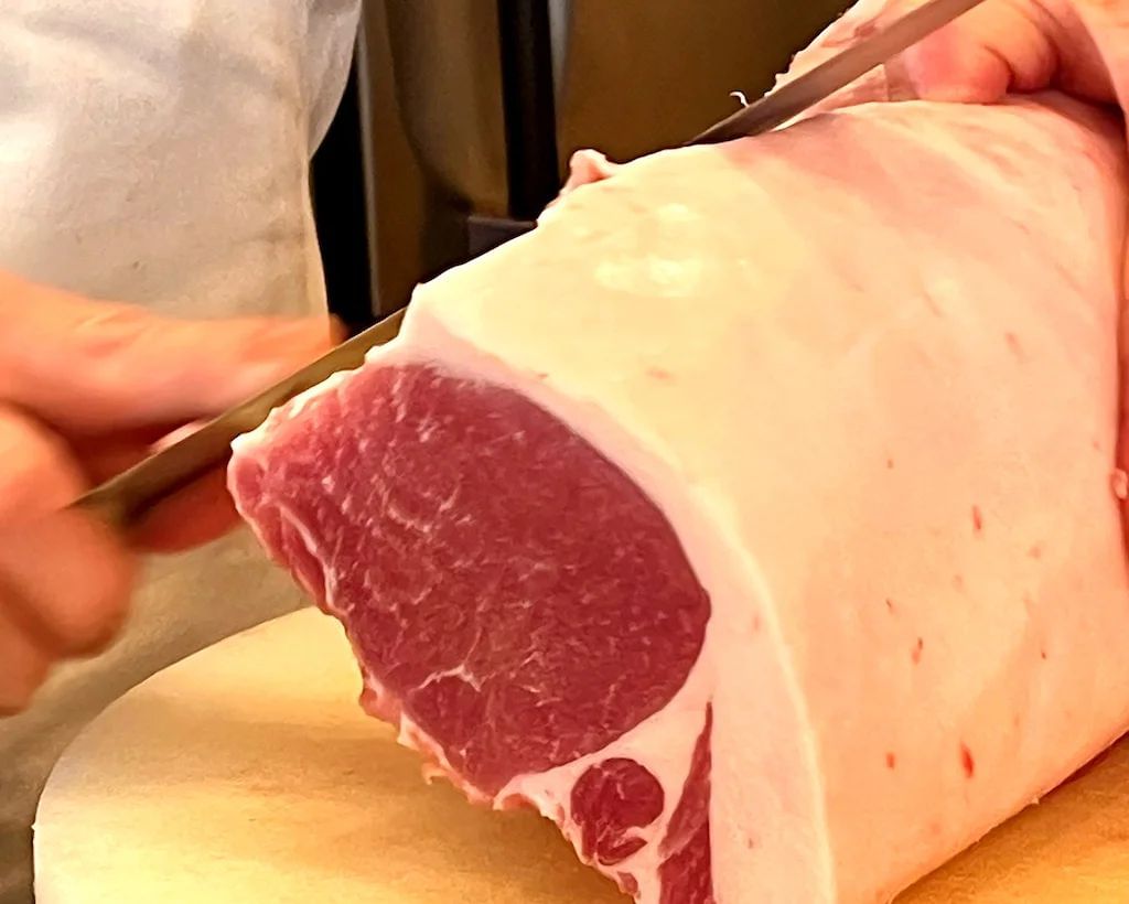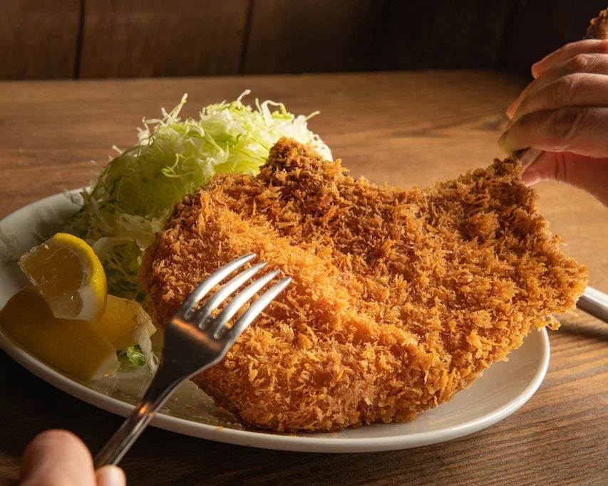 But Fujiki isn’t your everyday tonkatsu restaurant. Its eye-catching signature dish has made it onto news channels both within and outside of Japan: a colossal bone-in tomahawk-style pork cutlet from Ibaraki Prefecture
