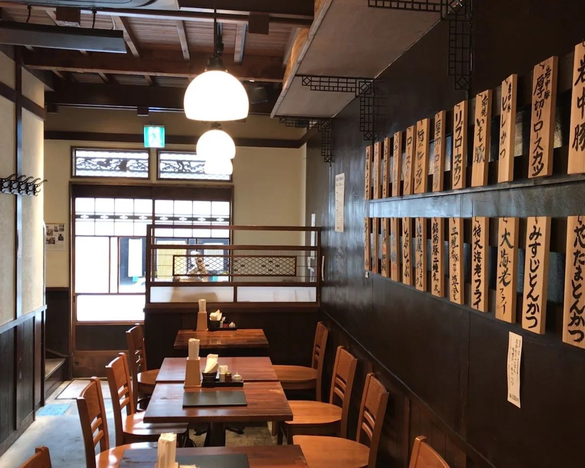 Massive, bone-in tomahawk-style pork cutlets from Ibaraki Prefecture are the signature dish of this central Tokyo tonkatsu establishment.