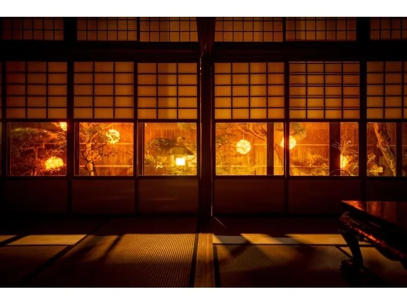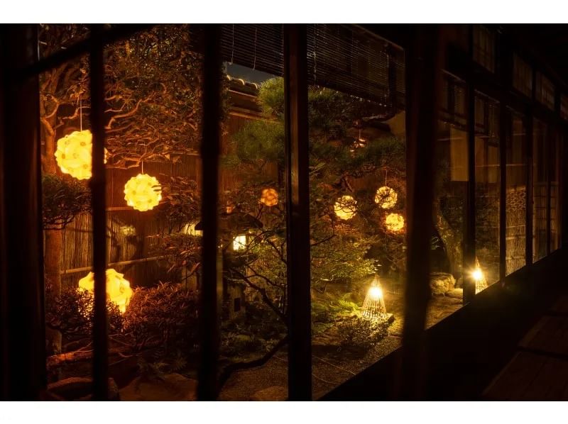您可以欣賞擁有 140 年歷史的文化遺產聯排別墅,大量採用和紙、木材、清酒桶等日本材料製成的手工燈飾,溫暖地照亮了六個花園。