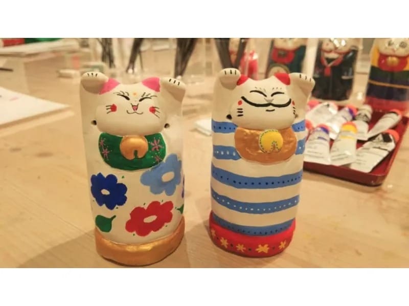 用無釉招財貓上色,創造出世界上獨一無二的原創招財貓。