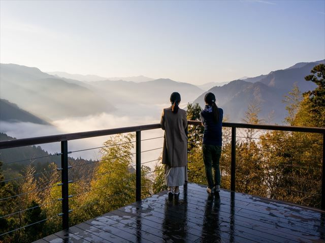 在吉野川蜿蜒進入伊谷深山的地方,有一種薄霧聚集並在山谷中流動的現象,被稱為 「雲海」。這些情況不僅會隨著該地區的地理環境而變化,還會隨著每天的天氣和河水溫度而變化。但在粟市(視季節而定),您幾乎每天都可以觀賞到這種自然現象!在太陽之前起床,沐浴在大自然的莊嚴之中。