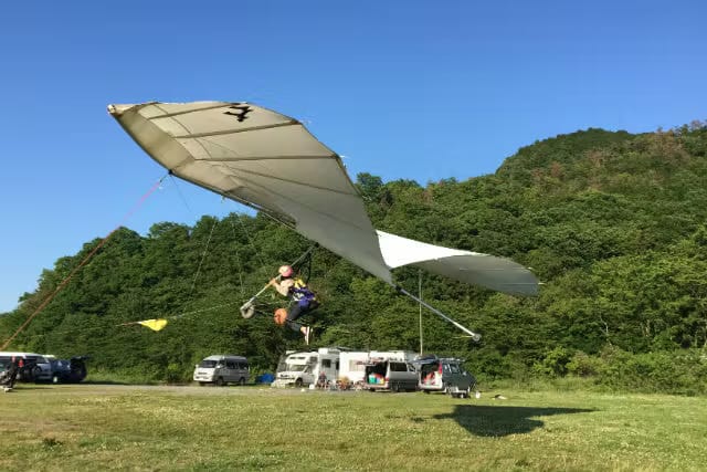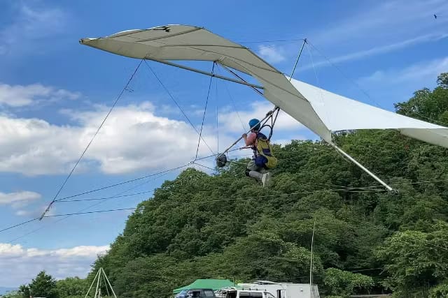 ★滑輪和鋼絲支撐滑翔機,因此無論您的技術水平如何,您都可以體驗和練習滑翔。 您可以安全、重複地飛行,並透過懸掛式滑翔度過充實的一天。