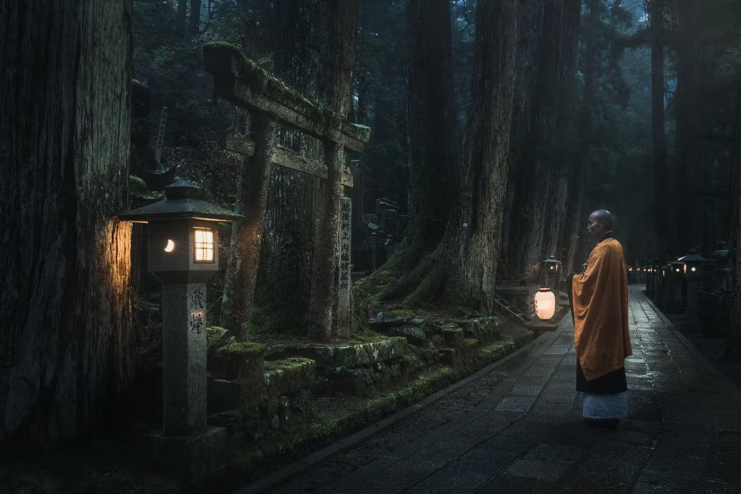 ⓵晚餐後、睡覺前,前往奧之院參拜弘法大師空海。