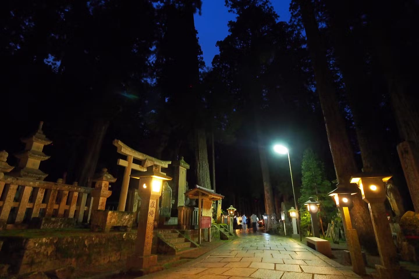 ⓹夜晚的奧之院與白天完全不同。您可以看到被石燈籠照亮的夢幻般的奧之院。