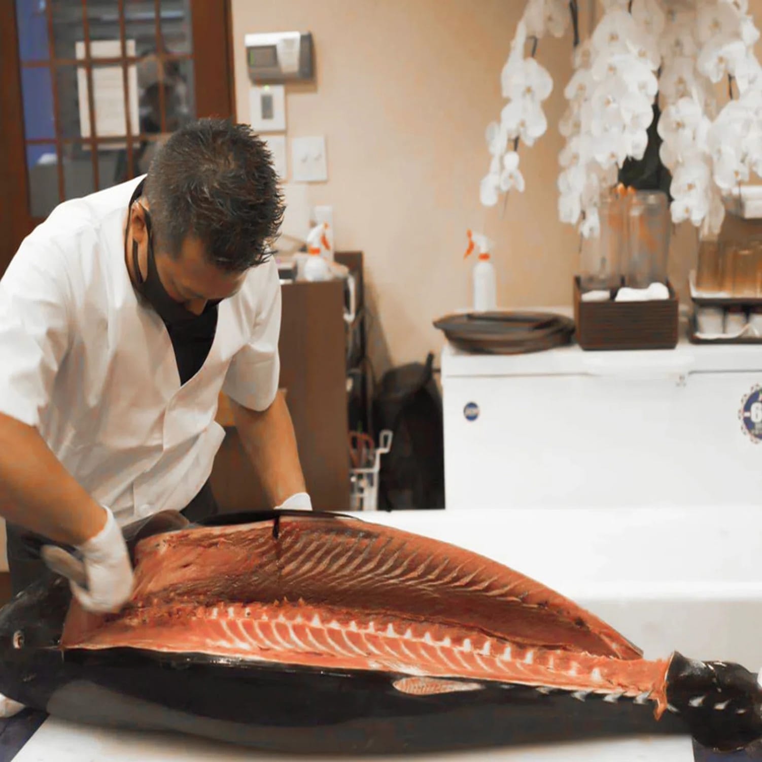 當用餐者觀賞著名壽司廚師將一整條注定要在您的餐盤中結束旅程的吞拿魚切片、切丁並準備好時,展示就變成了表演。廚師會向您講解吞拿魚、其文化意義以及製作過程中的儀式,並講述他們利用海洋資源製作饕餮盛宴的故事。