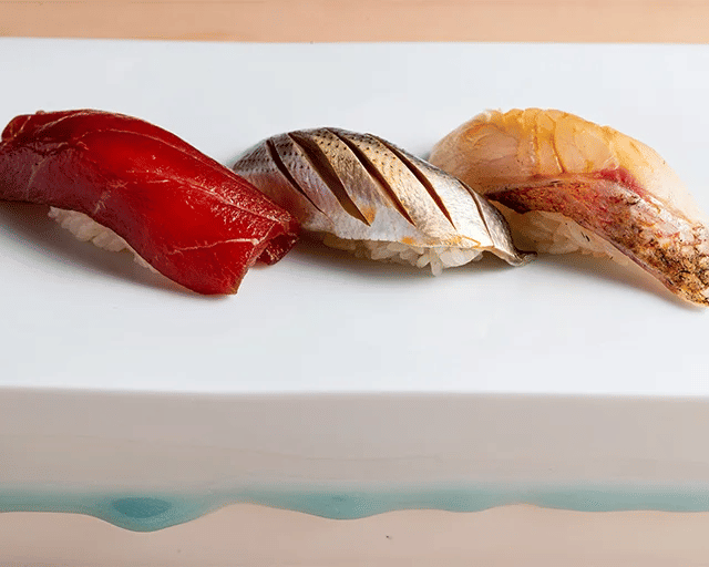 The sushi, made with the nakase fat-emulsifying technique as part of the Edomae tradition, offers patrons unparalleled flavors. The fish is perfectly complemented by the rice, cooked in a special pot with red and white vinegar. An impressive array of Japanese sake and wine accompanies the omakase sushi course.