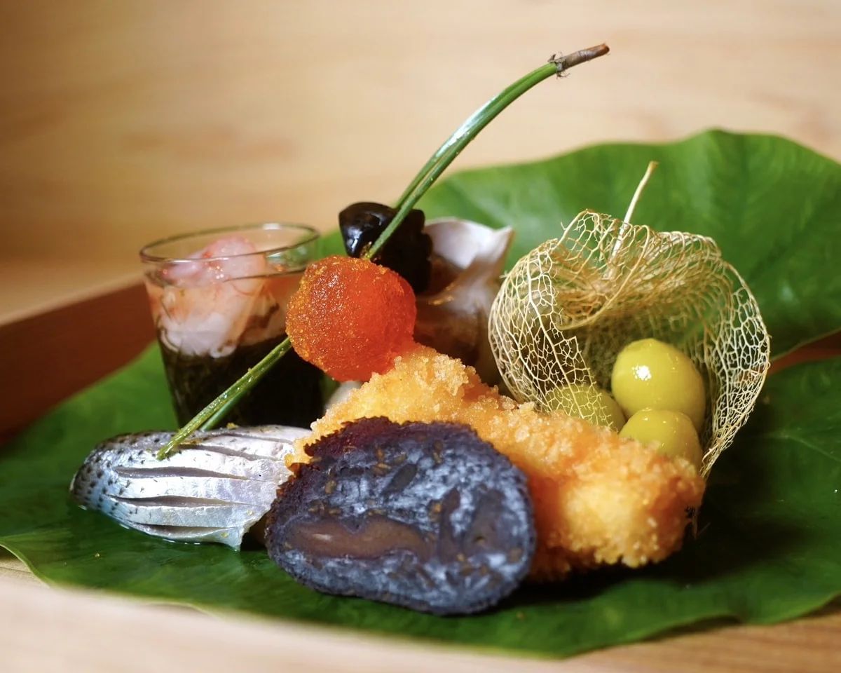 A selection of seasonal delicacies sourced from both mountain and sea, the “hassun” is the centerpiece of Chef Koshiba’s menus. In a single plate, it serves as a microcosmic snapshot of not just the season, but also the seafaring and mountain-foraging legacy of the Japanese people.